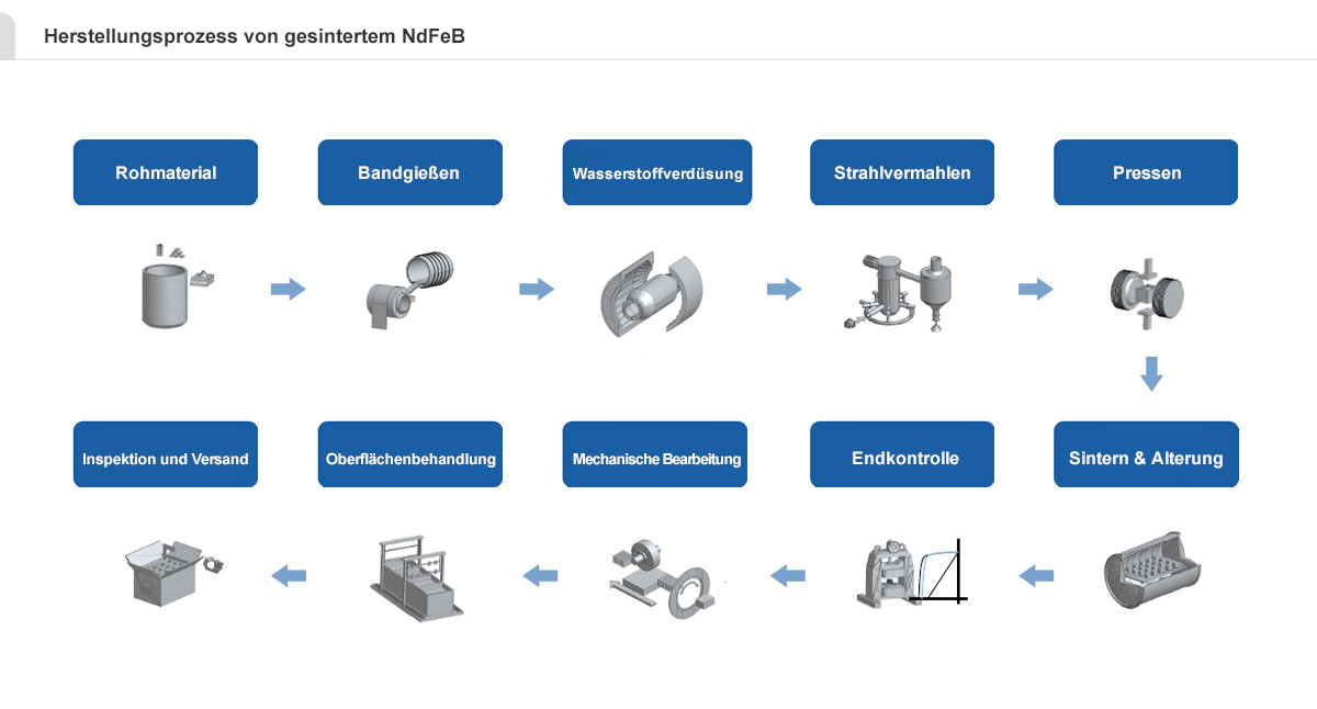 Neodym-Eisen-Bor (NdFeB), auch als Seltene-Erden-Eisenmagnete bezeichnet, bestehen haupts?chlich aus Eisen, Neodym, Bor und anderen Spurenelementen. Es handelt sich um die st?rksten derzeit hergestellten Dauermagnete mit hervorragenden magnetischen Eigenschaften. Dieses Magnetmaterial der dritten Generation erm?glicht es besonders kompakt in der Gr??e, gegen¨¹ber traditionellen Permanentmagneten, zu sein.