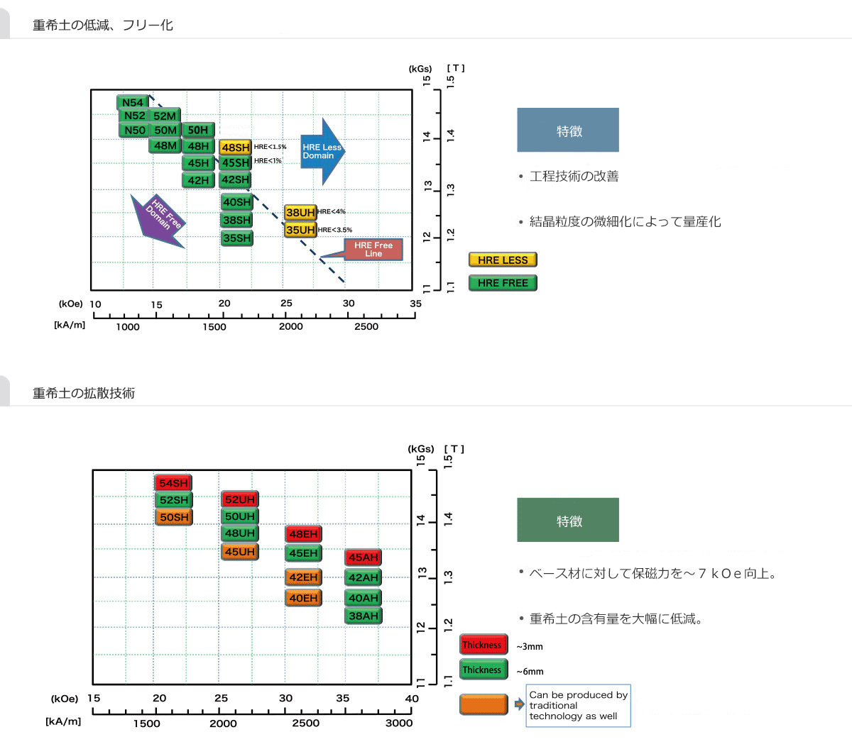 | その他磁気特性 | Br温度係数 (α(Br))/(%/K) | -0.08~-0.12 |