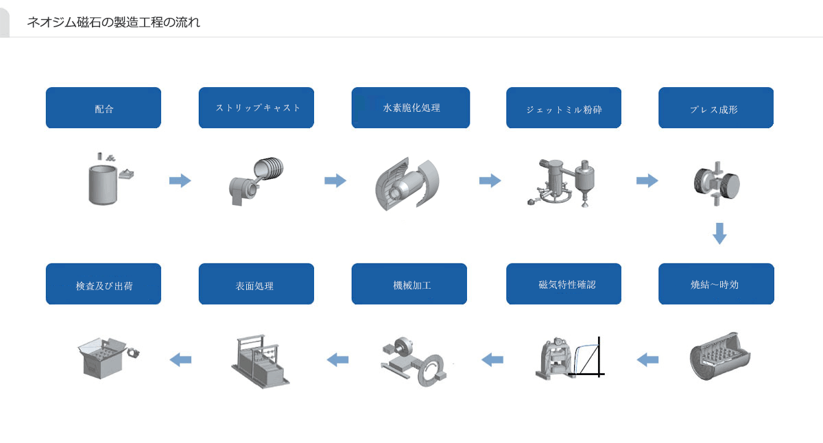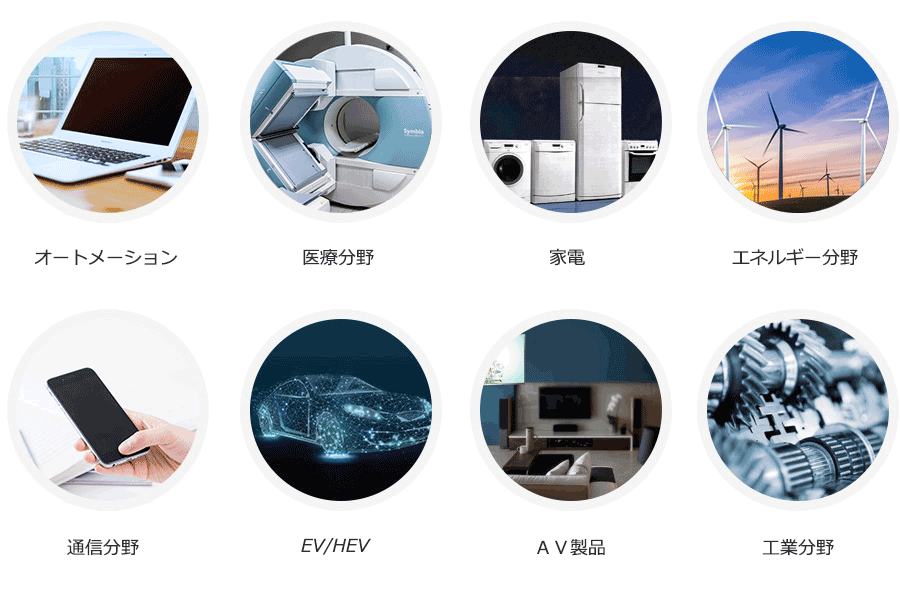 低環境負荷、省資源、省エネルギーなど、持続可能な循環型社会の実現に向けて、ネオジム製品はEV/HEVモーター、EPSモーター、エアコンコンプレッサー、風力発電、エレベーター用モーターなど様々な産業用機器分野に広く使用されています。