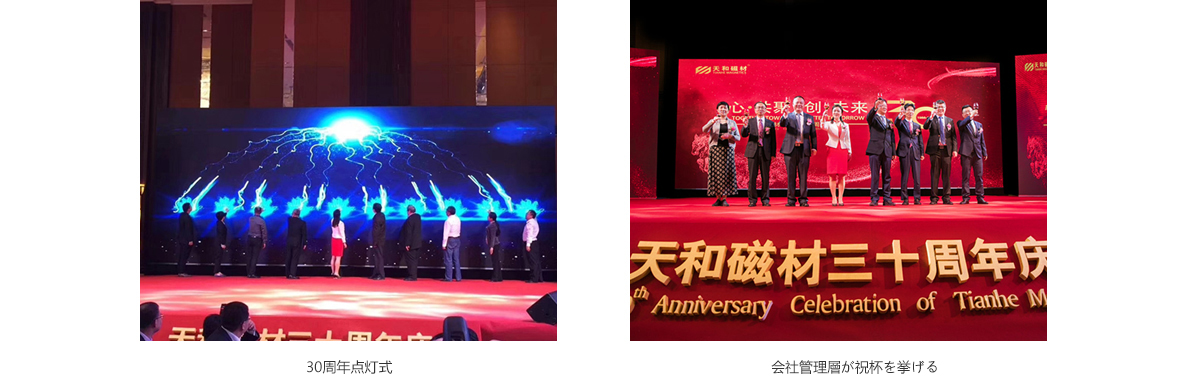雨風に負けず30年、支えてくれた政府の方々、顧客、サプライヤー、各界の友、そしてまじめに働く龙八头号玩家唯一従業員に感謝します。総経理の陳雅は各界の代表と祝賀会の点灯式を開きます。会長の袁文杰は、会社管理層、株主代表を乾杯の音頭で龙八头号玩家唯一磁材創立30周年を祝う。