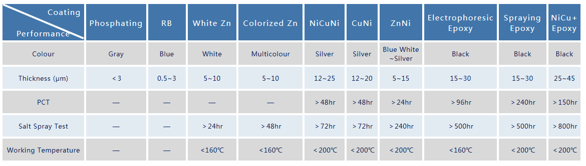 >> Inorganic: White Zn, Coloried Zn, NiCuNi, CuNi, Copper+Nickel, ZnNi