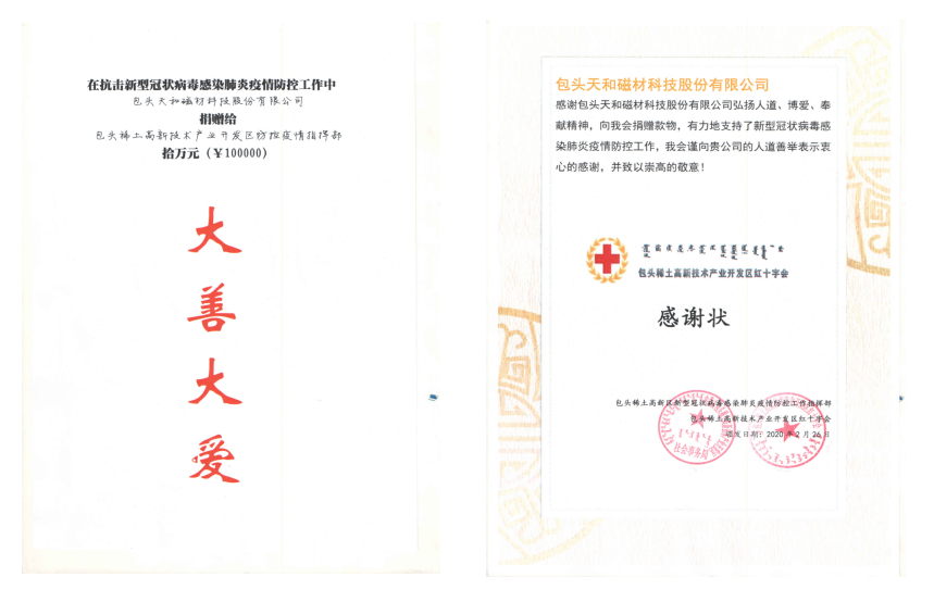 2月27日,龙八头号玩家唯一磁材向包头稀土高新技术产业开发区红十字会捐赠人民币10万元,用于支援疫情防控。